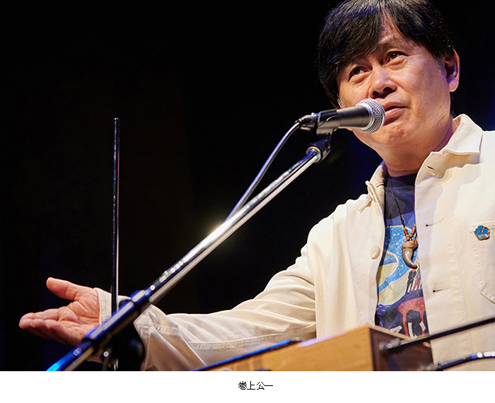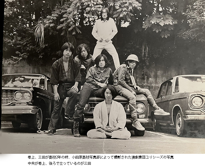 | 巻上公一さんのメッセージ 小田原高校では三年間新聞部 小田高の良さは、風通しの良さと反骨精神ではないかと、ぼんやり思い出している。高校生(高26)になってすぐ、なぜ か勧誘があり、新聞部に入った。新聞部は先輩たちの偉業のおかげで、全国大会で上位を保ち、野球部より予算が多かった。 しかも市内の先輩たちの店舗から広告収入もあった。 沼津の活版印刷所に出張校正に行くのも楽しみのひとつだった。校正待ちの時に天丼かカツ丼が印刷所から出るのだ。 当時、客観性よりも個人の考えを反映するパトス派の新聞が高校新聞界隈の話題で、「百段坂」という社説や「真帆片帆」というコラムの中に、反映されてい た。校舎から独立した樫葉館にはたくさんの部室があって、治外法権のような場所だった。隣は写真部そして映画部と演劇 部。 それから弁論部に文芸部。出入り自由のような気楽さだったので、よく掛け持ちで他の部に参加していた。 ヒカシューのメンバー、ギタリストの三田超人(海琳正道)は、小宮孝泰と落語研究会を立ち上げ後、演劇集団ユリシーズに引き抜いた。なにしろ顔が面白く、 テープのポン出しが得意である。 学生運動の名残もあり、それを引き継いでフォーク集会も開催した。反戦ビラの類いが配られると、嫌疑がかけられ、よく職員室に呼び出された。(もちろんそ のビラには覚えがない。) 図書館が好きだった。ロートレアモンやランボーを知り、柳田国男を読み、清水邦夫や唐十郎な どの新しい劇作が読みたく て、現代戯曲全集もいれてもらった。 図書館司書の大場和子先生は伊東に住んでいたので、帰りの列車も一緒だった。福田恆存が講演に来た折、新聞部でインタビューをして、「実験演劇をどう思う か」などと訊き、嫌がられた。アレン・ギ ンズバーグ「吠える」に衝撃を受けたのはもちろん。シアドア・ローザック著「対抗文化の思想」、ポール・グッドマン「不 条理に育つー管理社会の青年たち」アリシア・ベイ=ローレル「地球の上に生きる」など、ヒッピー文化に関する書籍が軒並 み翻訳されていた時期だ。学校の帰りには、八小堂書店で本を買い、喫茶エリーゼでナポリタンを食べ、東通り商店街入口近 くの山室先輩の家にたむ ろしていた。高二の時、卒業式ボイコットの風潮の中、「在校生の言葉」を古屋健と海琳正道とぼくが申し込み、三人で演劇 風味のハプニングを、途中で中断されないように巧妙に行った。小田高体操とアングラ演劇を取り入れたものであった。寺山 修司に影響されていたのだ。翌年から「在校生の言葉」がなくなったのは残念である。高校三年になってからは、劇団のオー ディションに受かり、東京に住んでいたので、あまりいい生徒だったとはいえないが、今回樫友祭に呼んでいただき、改めて 母校を感じる機会を与えていただき感謝している。 巻上公一 |