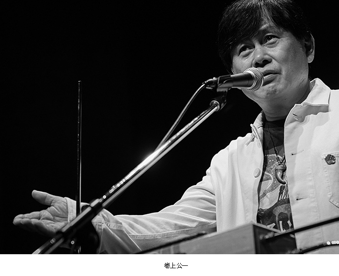 | 巻上公一さんのメッセージ 小田原高校では三年間新聞部 小田高の良さは、風通しの良さと反骨精神ではないかと、ぼんやり思い出している。高校生(高26)になってすぐ、なぜ か勧誘があり、新聞部に入った。新聞部は先輩たちの偉業のおかげで、全国大会で上位を保ち、野球部より予算が多かった。 しかも市内の先輩たちの店舗から広告収入もあった。 沼津の活版印刷所に出張校正に行くのも楽しみのひとつだった。校正待ちの時に天丼かカツ丼が印刷所から出るのだ。 当時、客観性よりも個人の考えを反映するパトス派の新聞が高校新聞界隈の話題で、「百段坂」という社説や「真帆片帆」というコラムの中に、反映されてい た。校舎から独立した樫葉館にはたくさんの部室があって、治外法権のような場所だった。隣は写真部そして映画部と演劇 部。 それから弁論部に文芸部。出入り自由のような気楽さだったので、よく掛け持ちで他の部に参加していた。 ヒカシューのメンバー、ギタリストの三田超人(海琳正道)は、小宮孝泰と落語研究会を立ち上げ後、演劇集団ユリシーズに引き抜いた。なにしろ顔が面白く、 テープのポン出しが得意である。 学生運動の名残もあり、それを引き継いでフォーク集会も開催した。反戦ビラの類いが配られると、嫌疑がかけられ、よく職員室に呼び出された。(もちろんそ のビラには覚えがない。) 図書館が好きだった。ロートレアモンやランボーを知り、柳田国男を読み、清水邦夫や唐十郎な どの新しい劇作が読みたく て、現代戯曲全集もいれてもらった。 図書館司書の大場和子先生は伊東に住んでいたので、帰りの列車も一緒だった。福田恆存が講演に来た折、新聞部でインタビューをして、「実験演劇をどう思う か」などと訊き、嫌がられた。アレン・ギ ンズバーグ「吠える」に衝撃を受けたのはもちろん。シアドア・ローザック著「対抗文化の思想」、ポール・グッドマン「不 条理に育つー管理社会の青年たち」アリシア・ベイ=ローレル「地球の上に生きる」など、ヒッピー文化に関する書籍が軒並 み翻訳されていた時期だ。学校の帰りには、八小堂書店で本を買い、喫茶エリーゼでナポリタンを食べ、東通り商店街入口近 くの山室先輩の家にたむ ろしていた。高二の時、卒業式ボイコットの風潮の中、「在校生の言葉」を古屋健と海琳正道とぼくが申し込み、三人で演劇 風味のハプニングを、途中で中断されないように巧妙に行った。小田高体操とアングラ演劇を取り入れたものであった。寺山 修司に影響されていたのだ。翌年から「在校生の言葉」がなくなったのは残念である。高校三年になってからは、劇団のオー ディションに受かり、東京に住んでいたので、あまりいい生徒だったとはいえないが、今回樫友祭に呼んでいただき、改めて 母校を感じる機会を与えていただき感謝している。 巻上公一 |