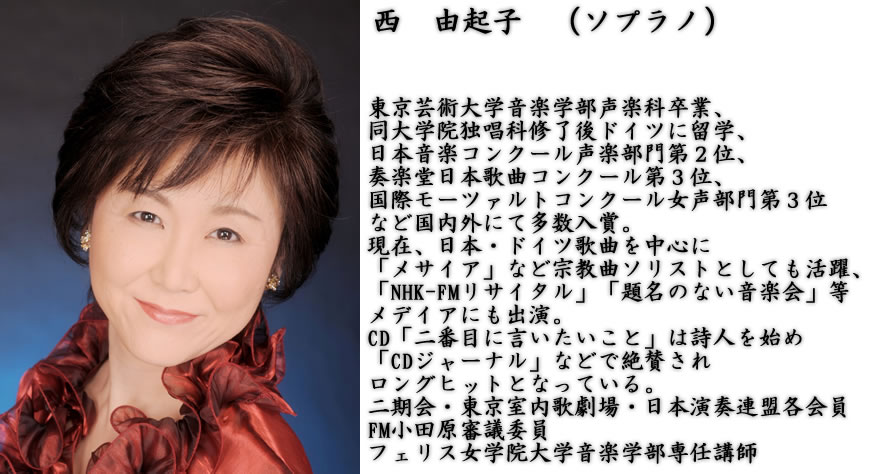 ソプラノ 西由起子(高34) → Profile ピアノ 落合 敦 → Profile |